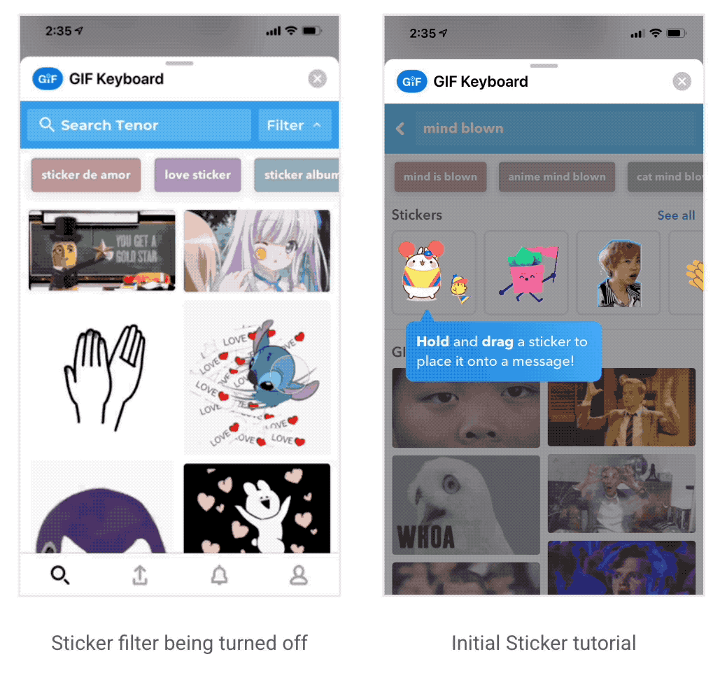 GIF/Stickers filter after user taps on the Search Bar