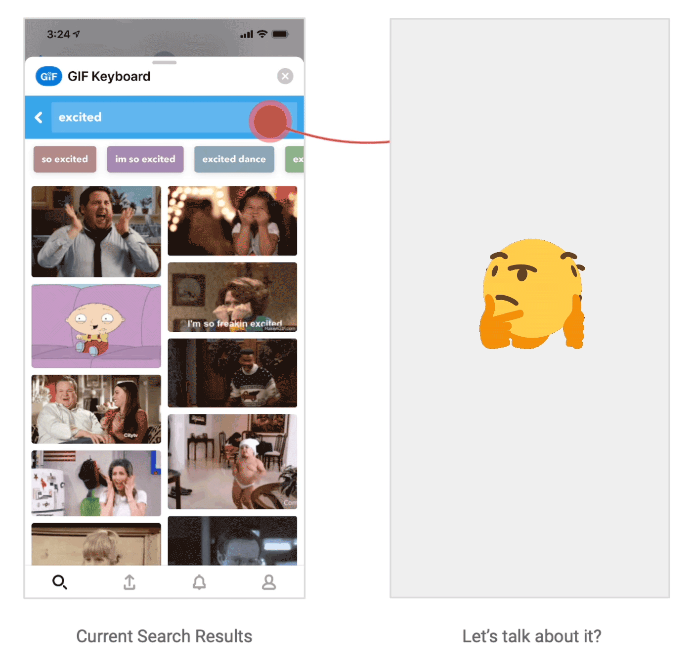 I knew I had to come up with an experience that could support both interactions but also not detract from our GIF offering.