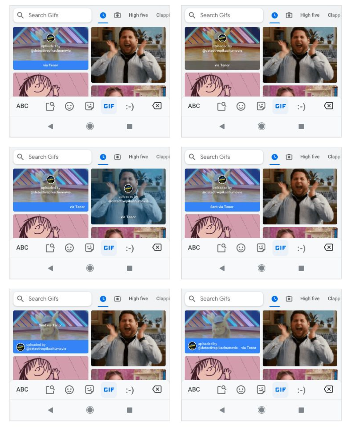 Clear attribution for shared GIF content that is User Generated on Tenor within Gboard’s UI.
