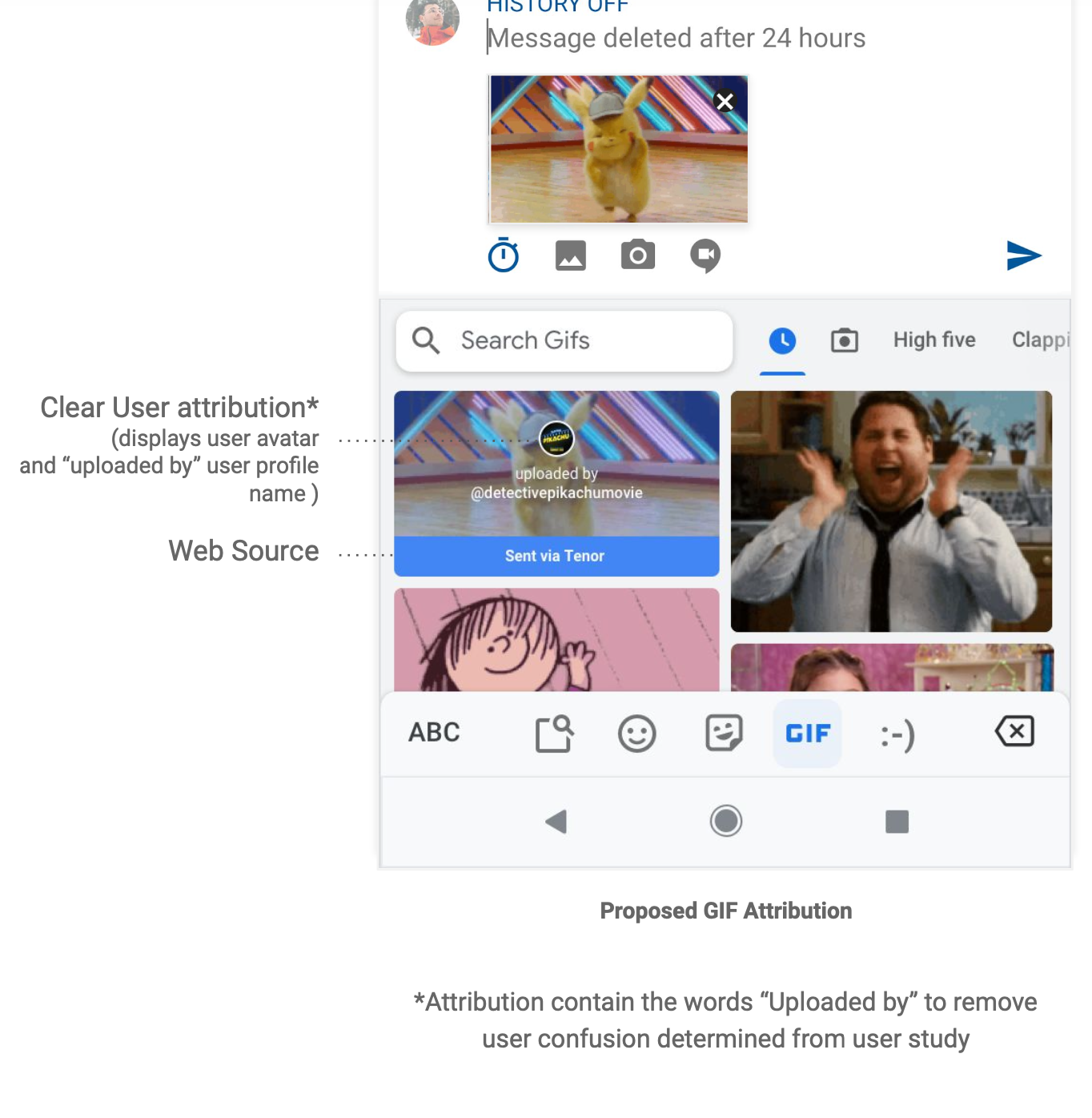 Users didn’t understand the attribution was from the person who uploaded the GIF. Some thought that it could have been the recipient of the GIF.